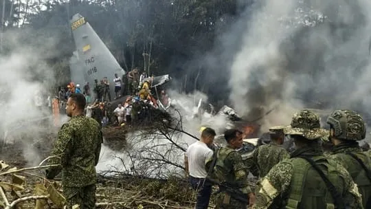 Avião militar da Colômbia cai com mais de 120 a bordo; há sobreviventes, diz Exército