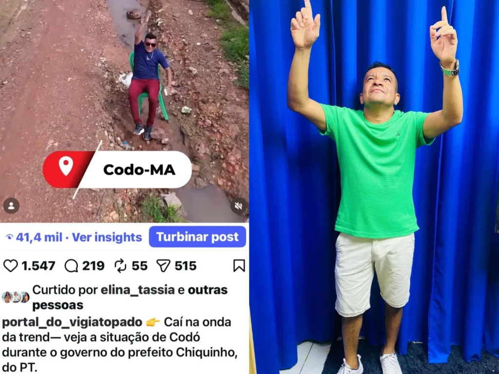 O Portal Vigia Topado alcançou grande repercussão nas redes sociais ao entrar na onda da trend no Instagram com um vídeo que mostra a realidade de Codó na gestão do prefeito Chiquinho do PT. Em menos de 24 horas, a produção já contabilizava quase 50 mil visualizações, além de 219 comentários e 515 compartilhamentos, números que demonstram o forte engajamento do público com o conteúdo publicado.